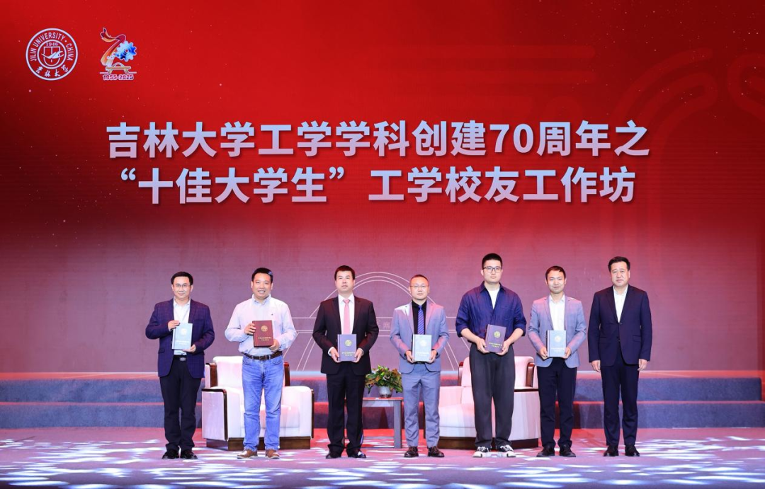 访谈后,丁世海为6位校友颁发了吉林大学“十佳大学生”工学学科创建70周年特别版奖牌。